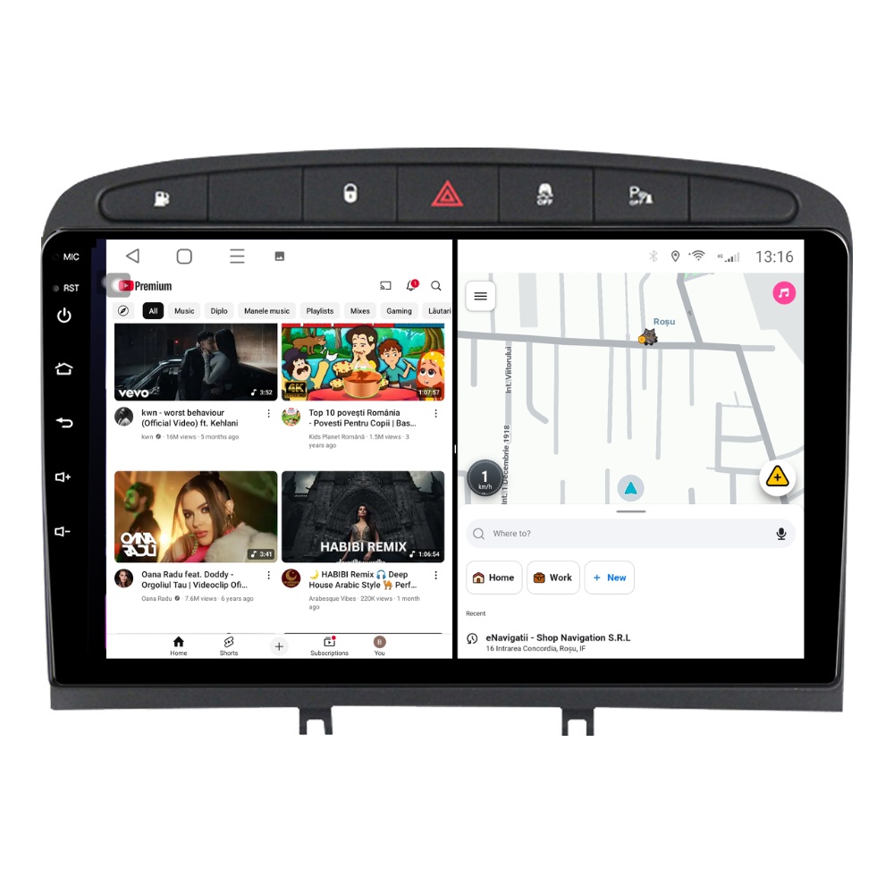 Navigatie Peugeot 308 I (2007-2013) cu Android, 8GB RAM, 128GB ROM, Ecran QLED 9" Touchscreen, CarPlay Wireless, DSP Pro