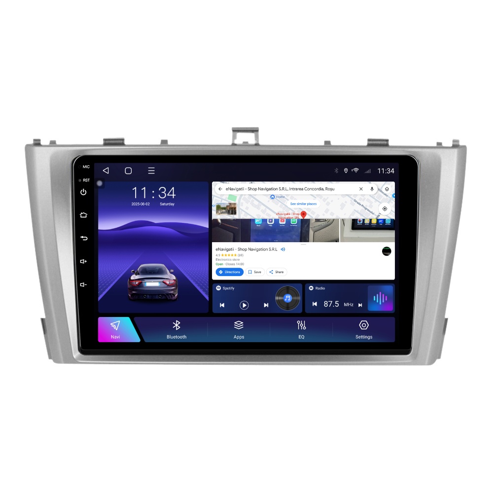 - Conectivitate Avansată: Apple CarPlay Wireless & Android Auto Wireless, Bluetooth 5.0, Slot SIM 4G & Wi-Fi 5GHz Dual Band, Suport Cameră marșarier + radio FM/RDS.