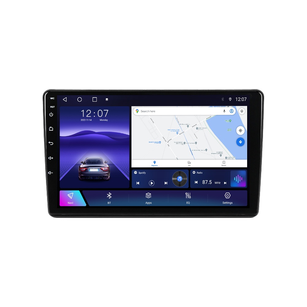 - Display QLED: Ecran tactil 9 inch (1280x720) cu sticlă curbată 2.5D.
