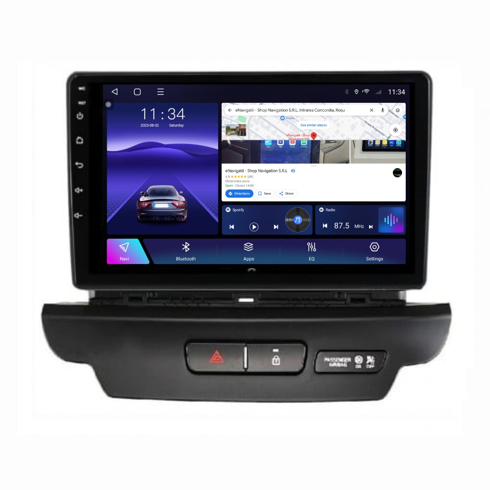 - Conectivitate Avansată: Apple CarPlay Wireless & Android Auto Wireless, Bluetooth 5.0, Slot SIM 4G & Wi-Fi 5GHz Dual Band, Suport Cameră marșarier + radio FM/RDS.