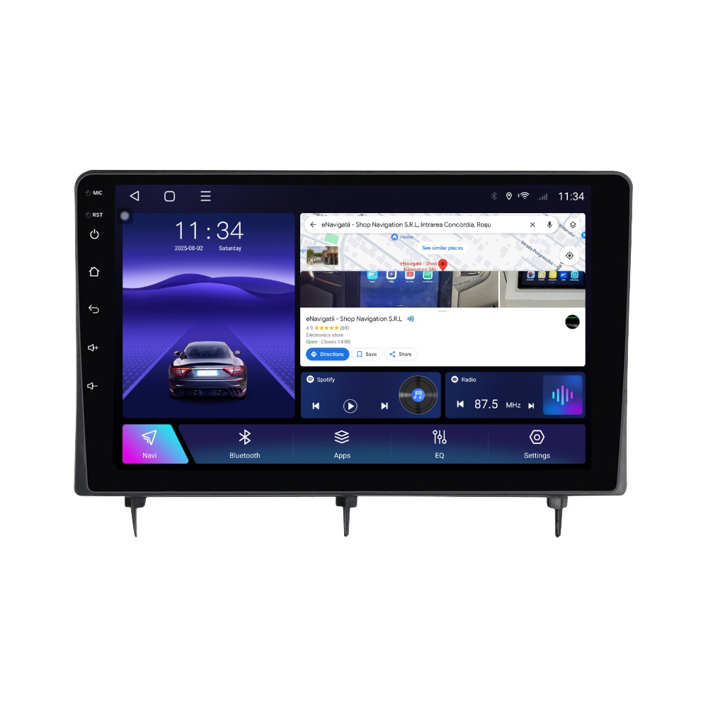 - Conectivitate Avansată: Apple CarPlay Wireless & Android Auto Wireless, Bluetooth 5.0, Slot SIM 4G & Wi-Fi 5GHz Dual Band, Suport Cameră marșarier + radio FM/RDS.