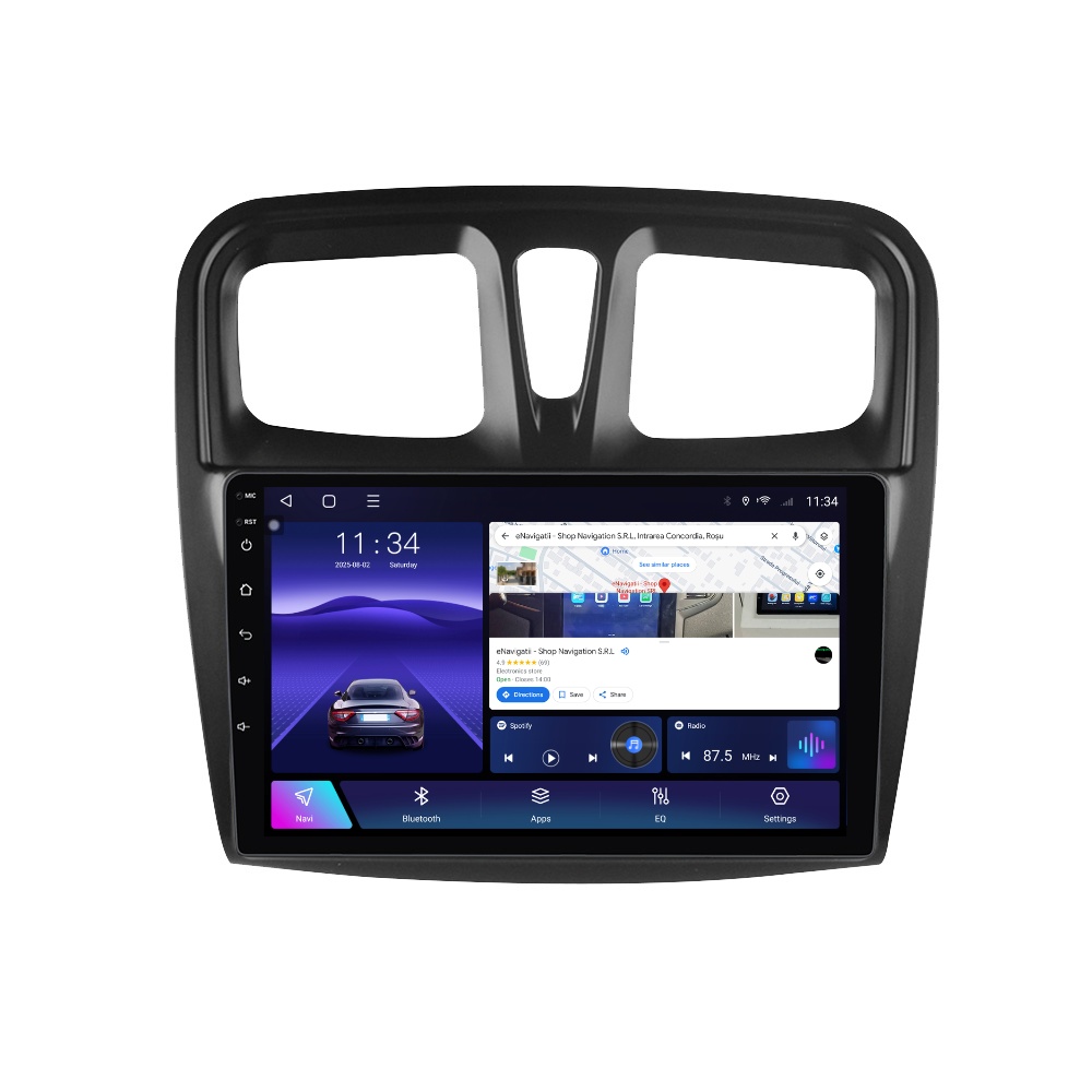 Navigatie Dacia Sandero II (2012-2020) cu Android, 6GB RAM, 128GB ROM, Ecran QLED 9" Touchscreen, CarPlay Wireless, DSP